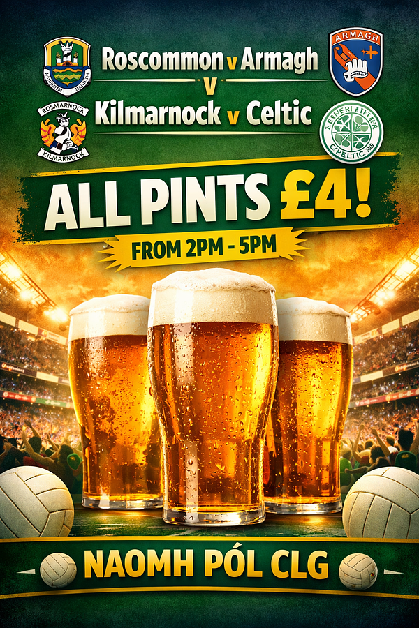 Both matches being shown and for THREE HOURS all pints are just £4.