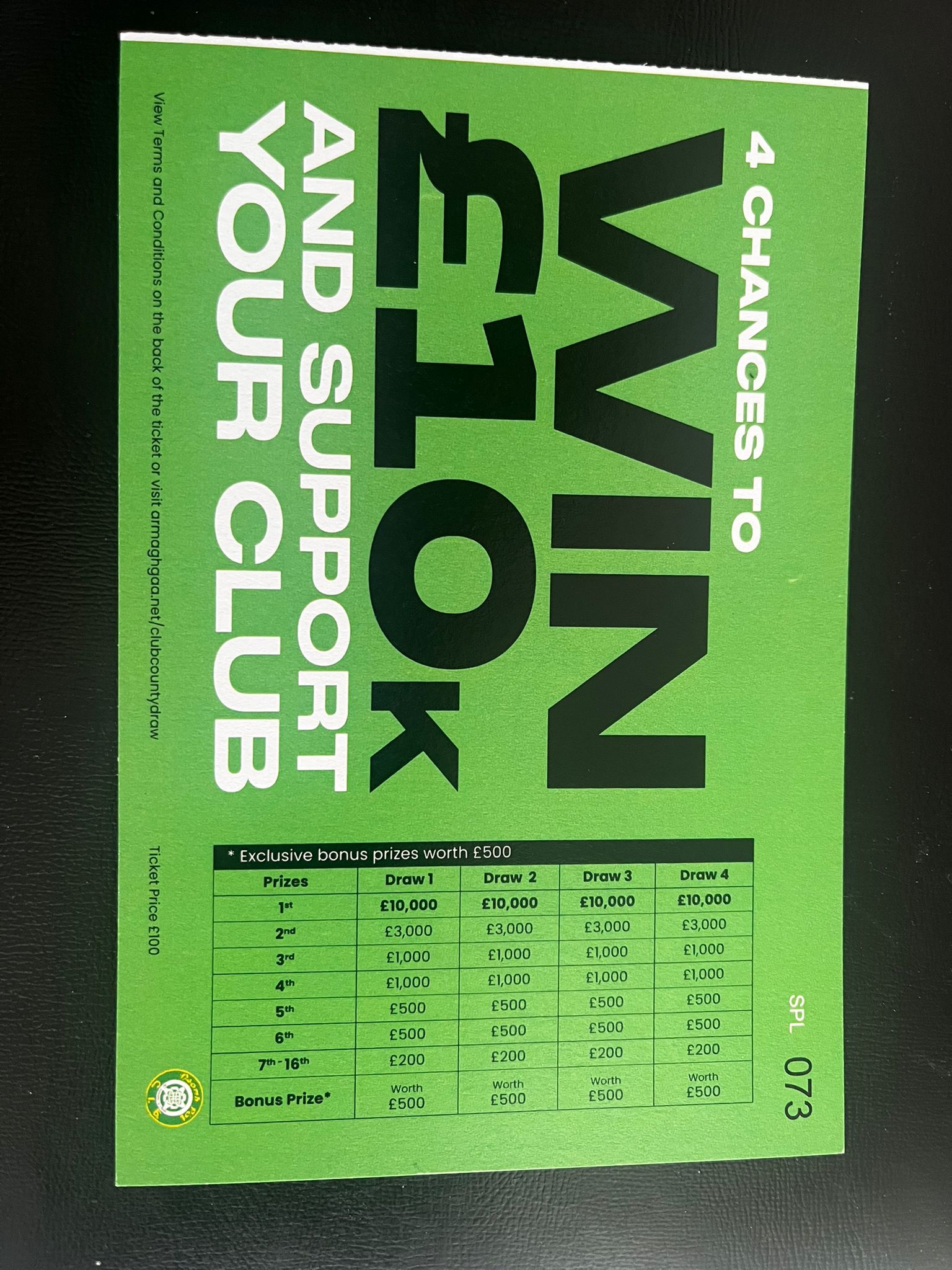 Your chance to win TWO £100 County Draw tickets for just £5, giving you EIGHT chances to win £10,000.